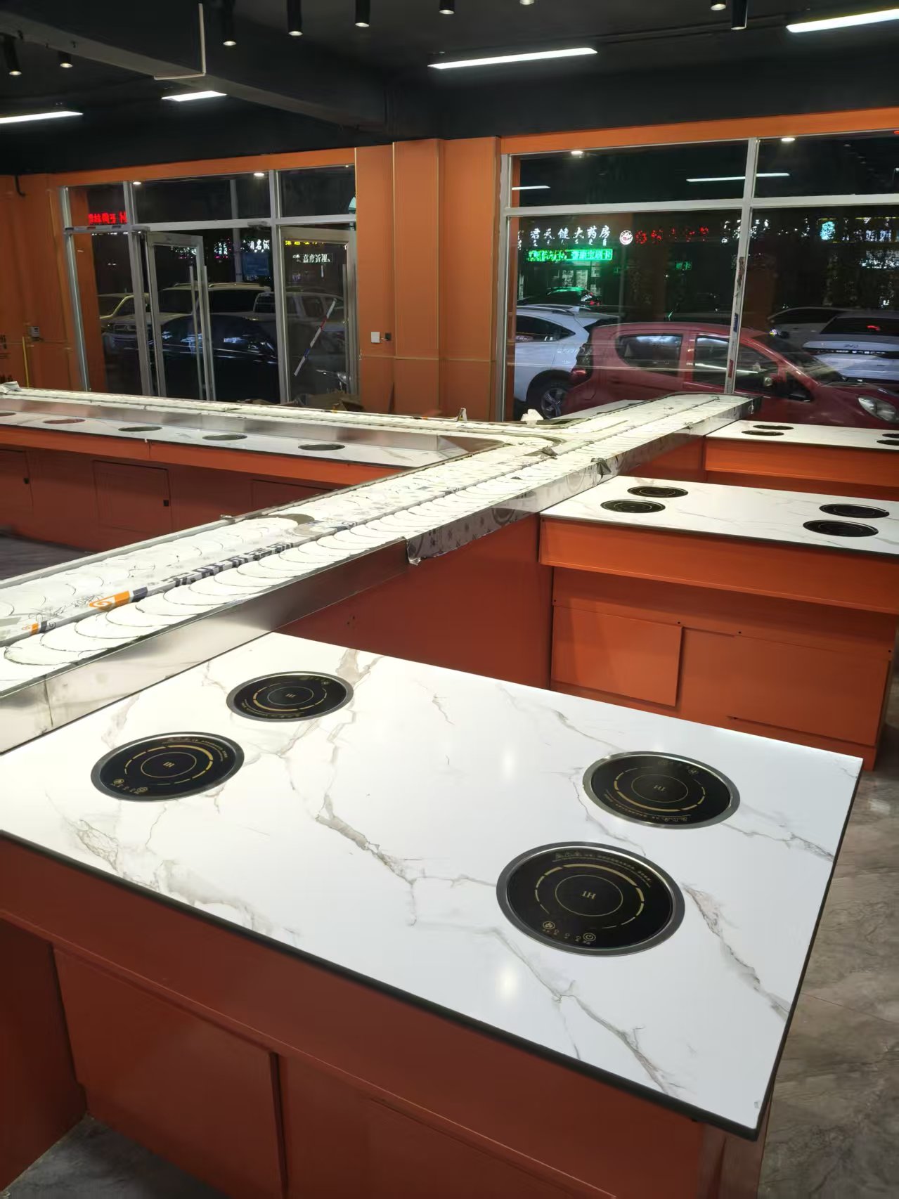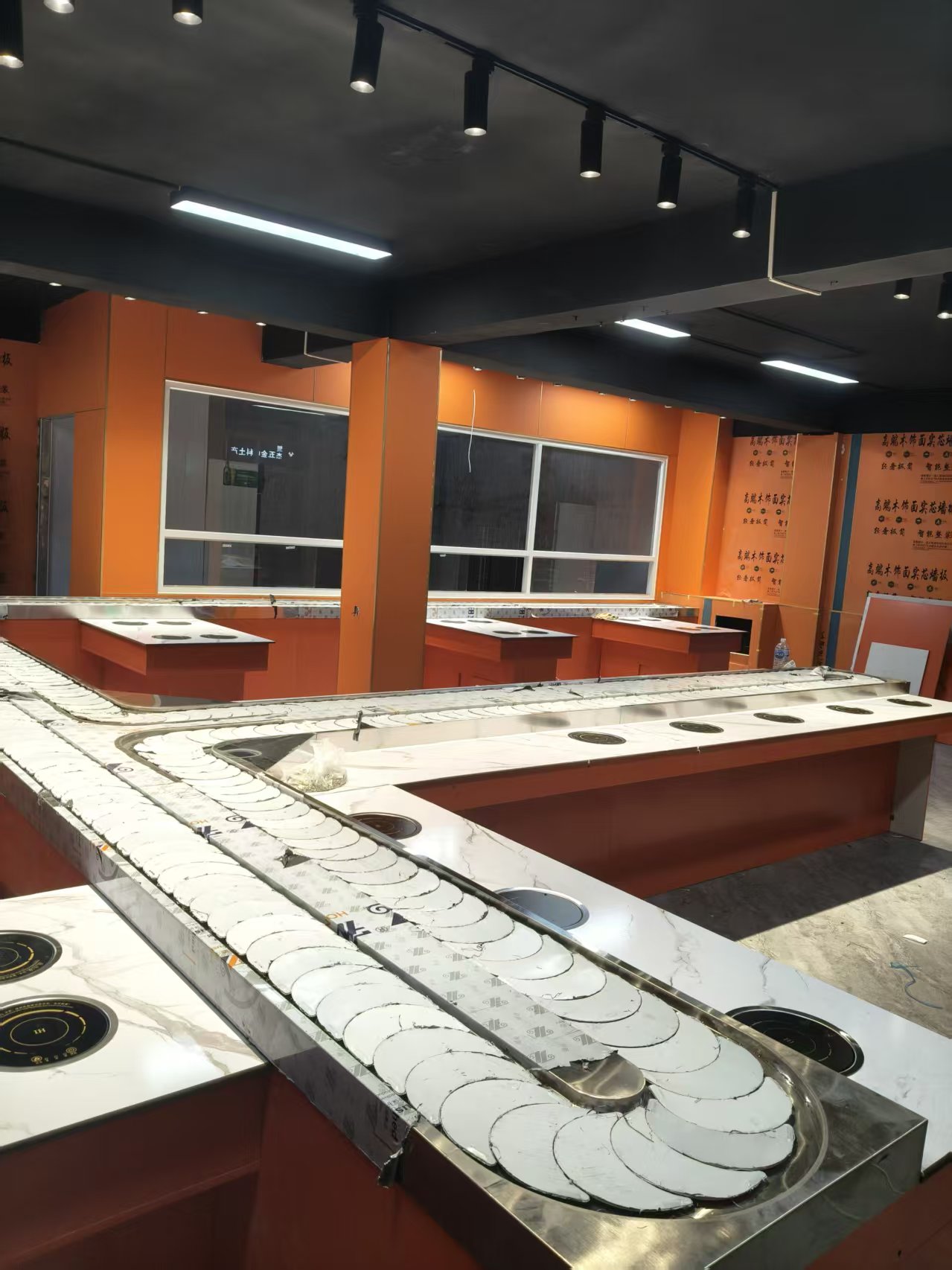 突破传统环形布局,增设“双人共享台”“多人聚餐区”,既保留“一人食”的便捷,又满足朋友小聚的互动需求,解决“聚餐选旋转火锅尴尬”的痛点;